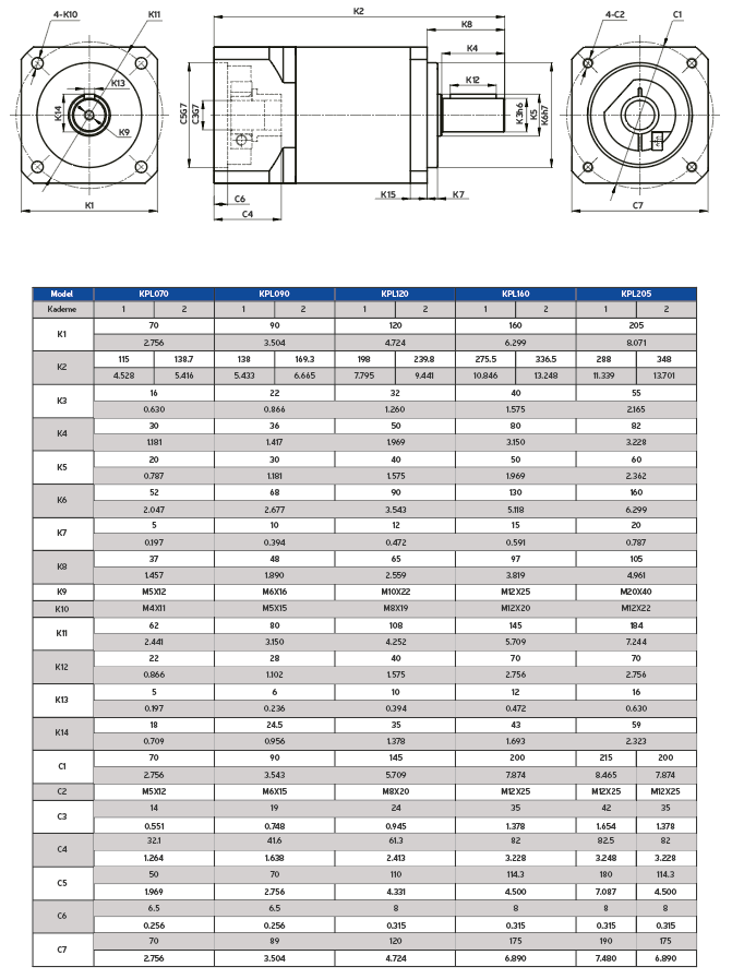 KPL Serisi planet redüktörler yuvarlak gövde çıkış milli olup yüksek hassasiyetli uygulamalar için idealdir.